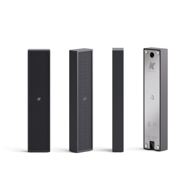 La face avant du caisson de haut-parleur est protégée par une grille magnétique qui peut être retirée à l'aide d'un petit bouton magnétique en néodyme, inclus dans l'emballage. Cette nouvelle fonctionnalité rend le point de fixation beaucoup plus rapide d'accès, ce qui aide les installateurs à réduire les temps d'installation et de maintenance. Le panneau arrière intègre un petit connecteur euro-block à deux pôles à vis, de sorte qu'aucun connecteur spécifique n'est nécessaire, ce qui simplifie encore davantage le processus d'installation.
